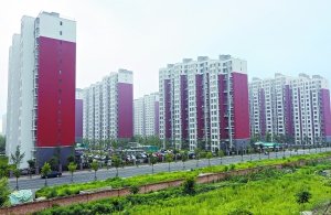 18栋回迁楼,清一色的高层板楼,外墙刷成青灰色、赭红色,透着庄重典雅;间距达70米的楼宇间,散落着大片绿地,青翠的梧桐、银杏,娇艳的月季、紫薇,让人看着心旷神怡。