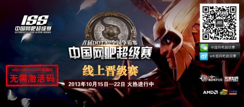 10月1日开赛,12天的线上激战!中国网吧超级赛·首届DOTA2全国争霸赛,随着全国25个赛点前32强名单揭晓,为期12天激烈无比的线上积分赛部分于2013年10月12日完美收官!而线上晋级赛的角逐即将于10月15日火爆开战!