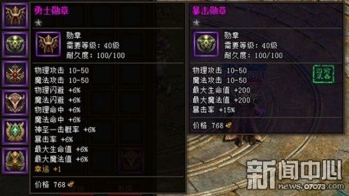 勋章是玩家最大的荣耀,胸前闪闪的勋章,见证着他们的最高功勋成就。《传奇演义》勋章魅力无限,一场头衔主宰荣誉战正是打响,获得属于你的最高荣耀战斗勋章吧。这次新版开放了六件顶级荣誉勋章,分别是:勇士勋章、暴击勋章、神圣勋章、幸运勋章、生命勋章、防御勋章。顶级勋章有较低概率通过击杀各种BOSS及副本掉落。