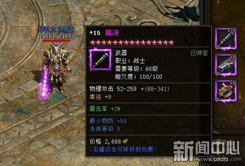 在原有的白色、蓝色、绿色的基础上,本次版本开放了紫装系统。紫色装备比蓝、绿色装备在基础属性上有更大的加成。紫色装备有较低概率通过击杀各种BOSS及副本掉落。