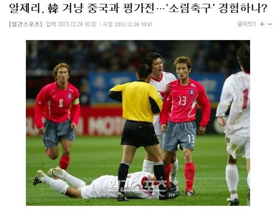 日前,有消息称阿尔及利亚打算邀请中国队热身,为备战2014年世界杯小组赛和韩国队的比赛,韩国媒体拿这一新闻再次对中国足球进行污蔑性报道。